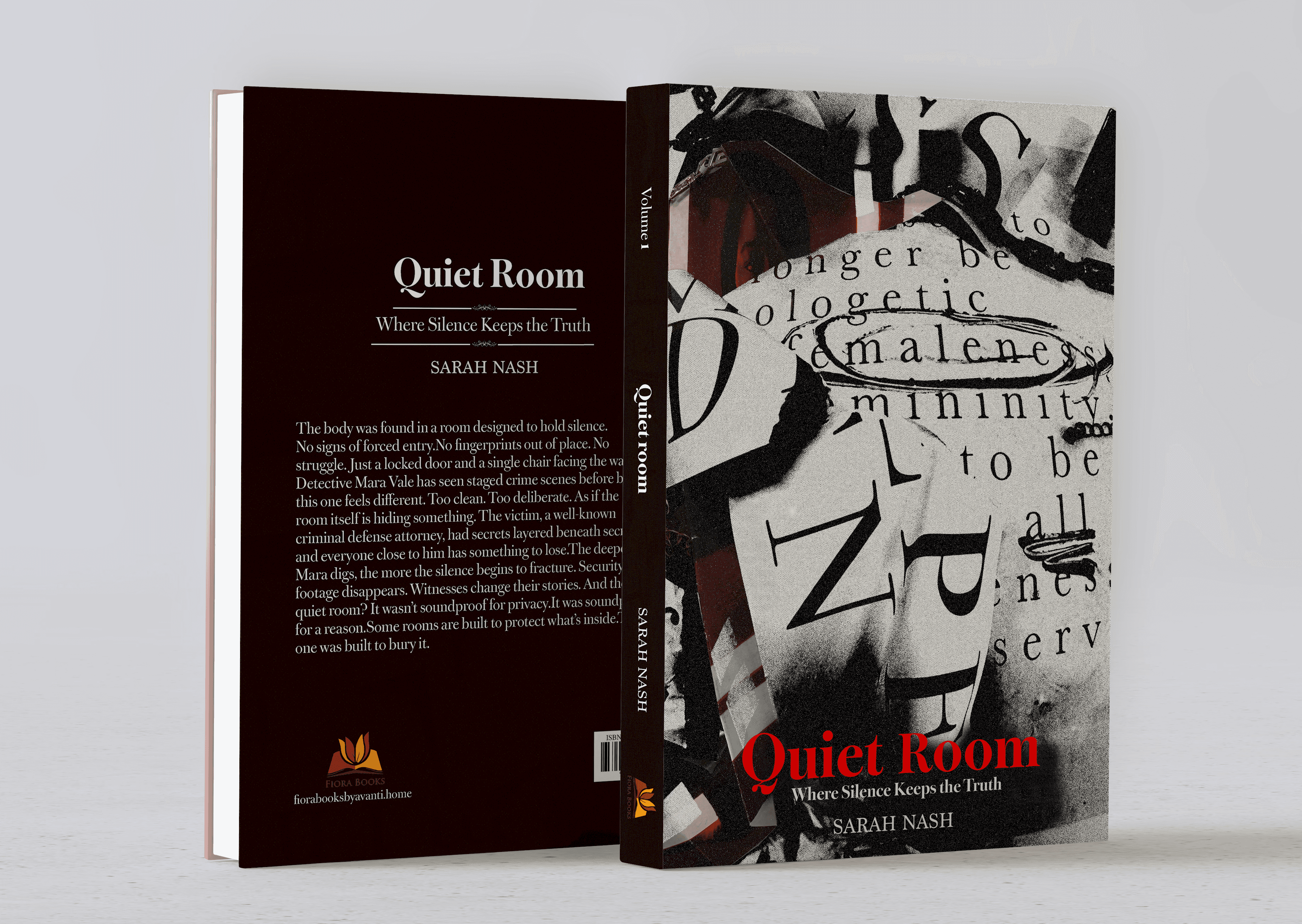desaturated tones to darker, high-contrast palettes echo the unease of the imagery, The Large red serif type,The final design conveys a moody, unsettling atmosphere, where layered materials and restrained visuals work together to create a quiet yet gripping sense of mystery.